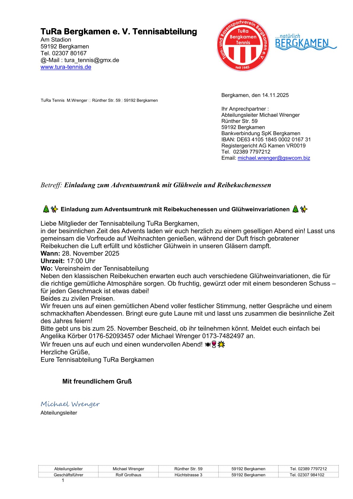 — Der Vorstand der Tennisabteilung TuRa Bergkamen —